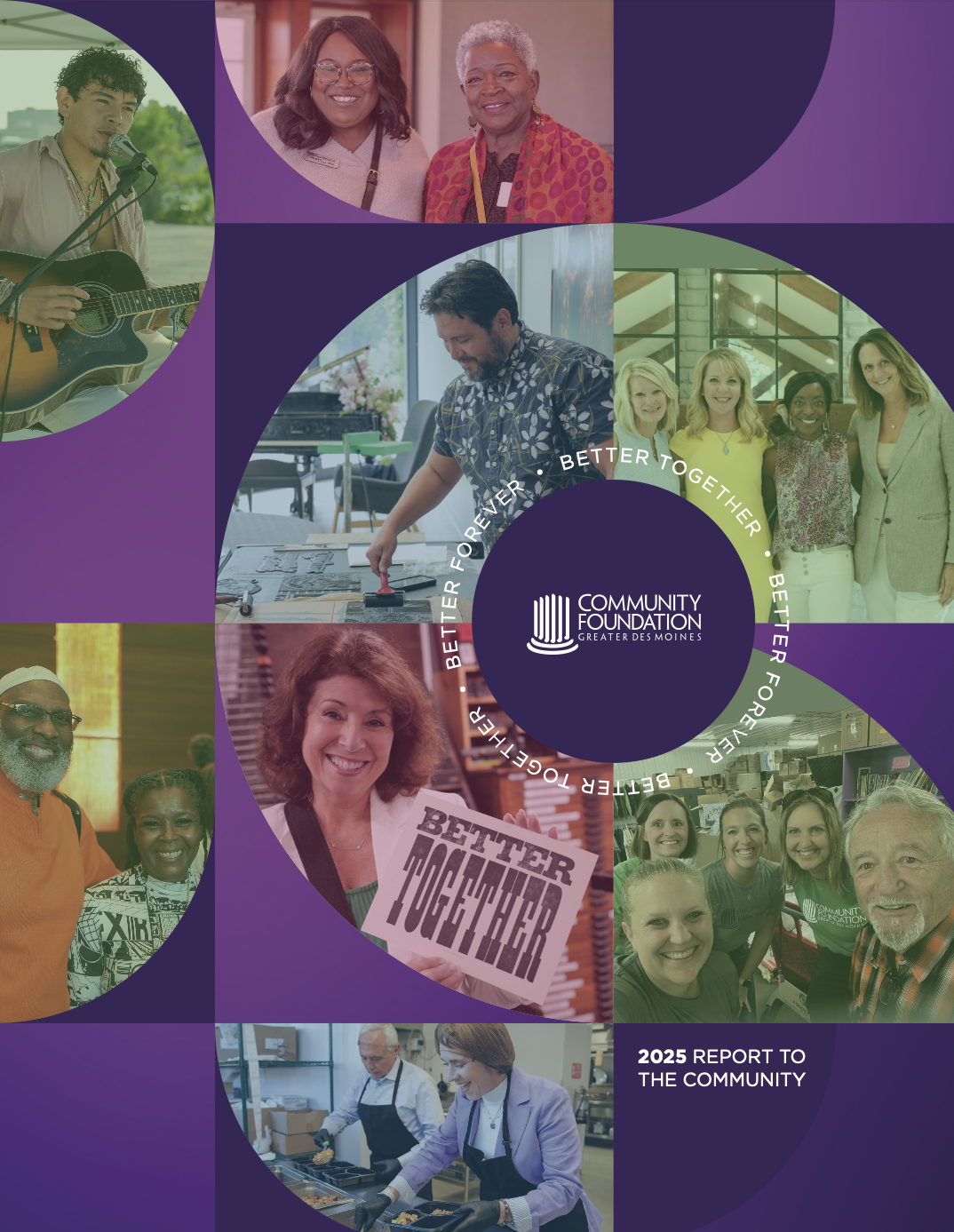 In 1969, community leaders came together with the tremendous foresight and vision to create a foundation to serve the pressing needs and promising opportunities of our community. They recognized that to have a world-class region, sustainable support for organizations and community projects would enable our neighbors and communities to thrive. For over 55 years, the Community Foundation of Greater Des Moines has proudly carried out this mission to improve quality of life for all by promoting charitable giving, connecting donors with causes they care about and providing leadership on important community issues – we’re simply better together.