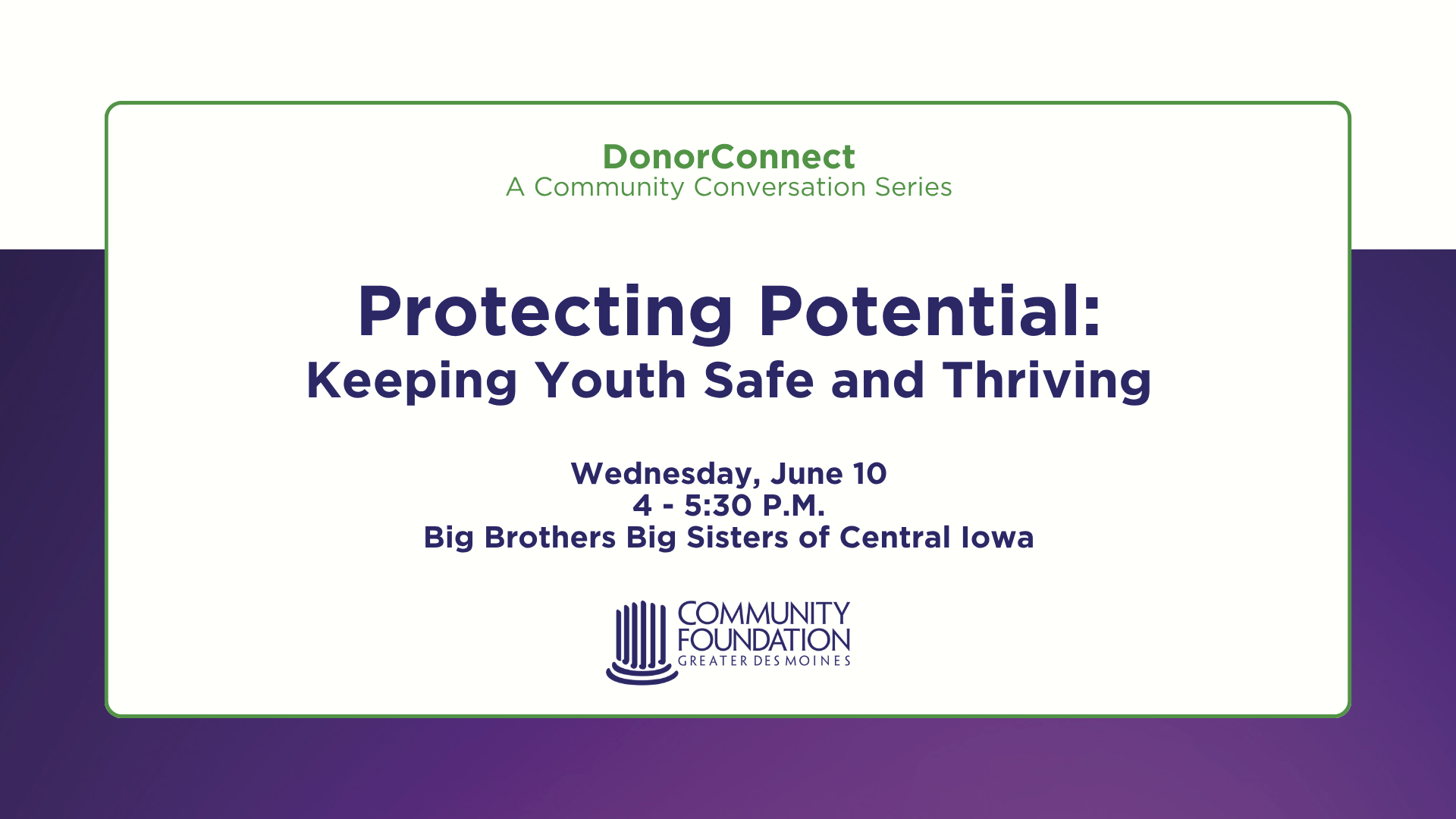 By registering for this event, you agree to receive event-related emails, including information about similar upcoming events, from the Community Foundation of Greater Des Moines. You may unsubscribe at any time using the link in our emails.